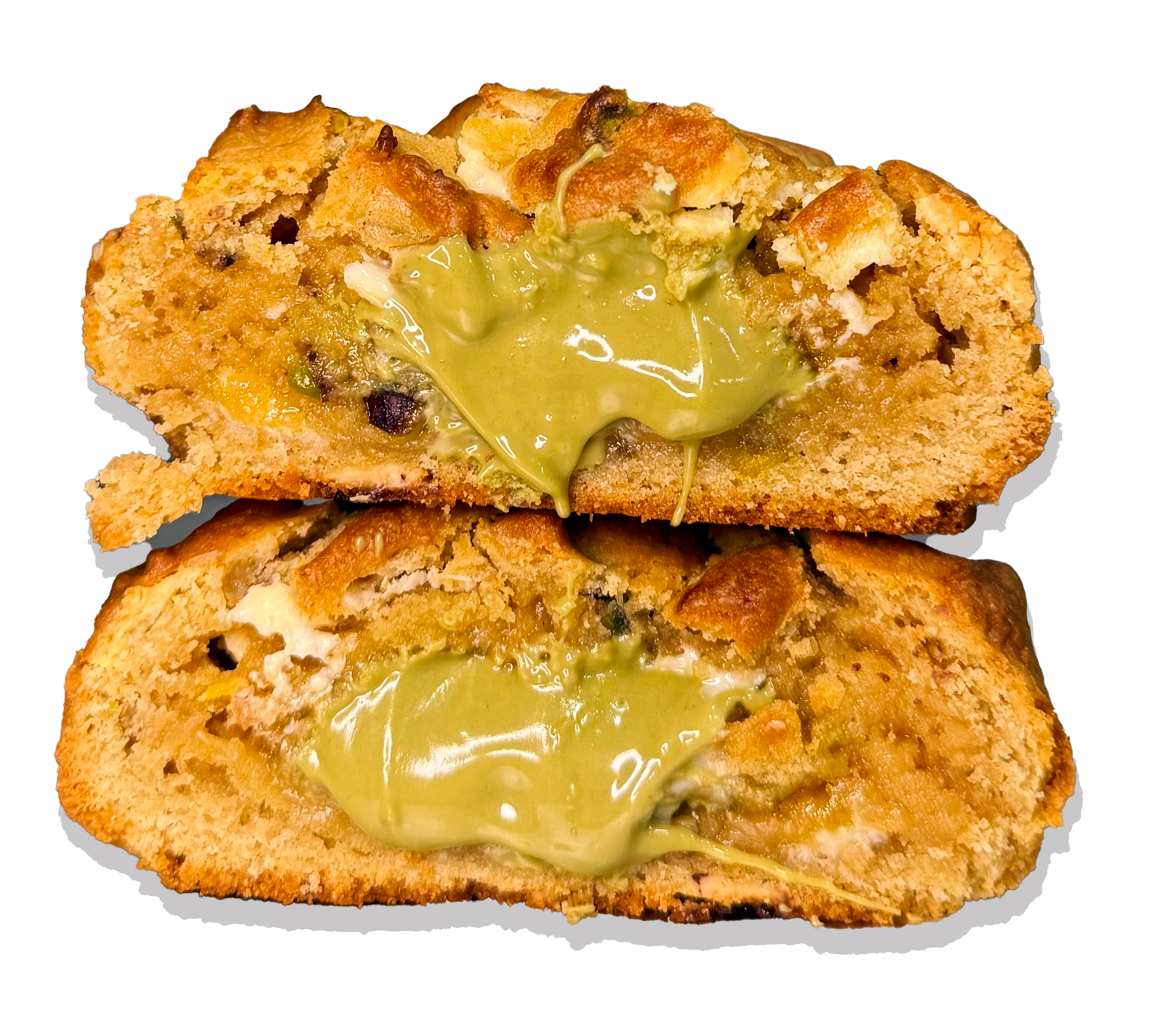 A NYC style cookie, mixed with chopped pistachio & Belgian white chocolate and filled with an Italian pistachio cream!
